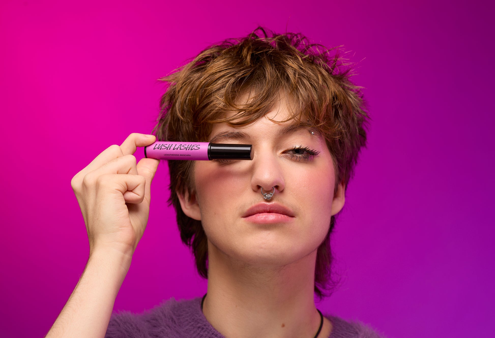 Aplica un poco de máscara voluminizadora de color negra intensa que aprovecha los beneficios de los ingredientes acondicionadores de pestañas naturales y con bajo contenido en conservantes para conseguir un volumen duradero, una separación y una longitud exquisita. El 94% de las probadoras notaron una definición significativa de las pestañas al usar Lush Lashes y el 84%* estuvieron de acuerdo en que recomendarían Lush Lashes a sus mejores amigas, ¡la prueba definitiva para un nuevo producto básico de maquillaje! Tú te ocupas de ti, Lush se ocupa de las pestañas.